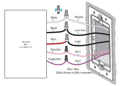 Interruptor de pared con botón de rango de voltaje de entrada universal de 100-277 V CA para Regulación dali-2 Carcasa de plástico Diseño para una instalación fácil y rápida. No es necesario configurar un código de dirección; simplemente conecte el cable de alimentación y estará listo para usar. .