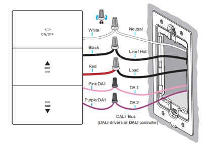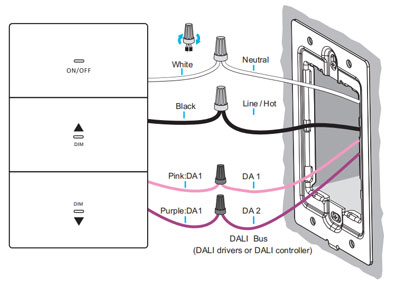 Nota 1: Detecta automáticamente el bus DALI y habilita/deshabilita de forma inteligente su fuente de alimentación de bus incorporada.