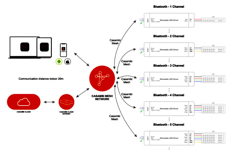 Este Fuente de alimentación LED regulable Casambi de 150 W con tensión constante Presenta un diseño de carcasa de aluminio para una excelente disipación del calor, lo que la hace adecuada para proyectos de iluminación LED inteligente de interiores y permite una atenuación suave y estable.
