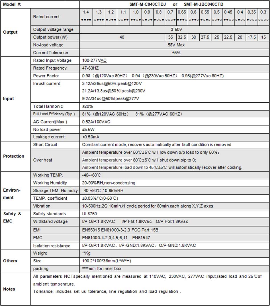 Modelo: SMT-M-040CTD Voltaje de entrada: 100-277 V CA