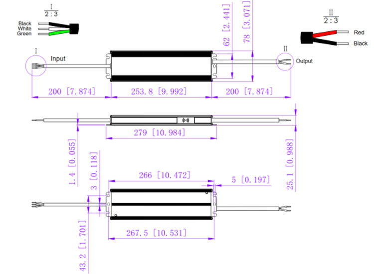 1. Cable de entrada 3*18AWG, cable negro (L), cable blanco (N), cable verde (G).